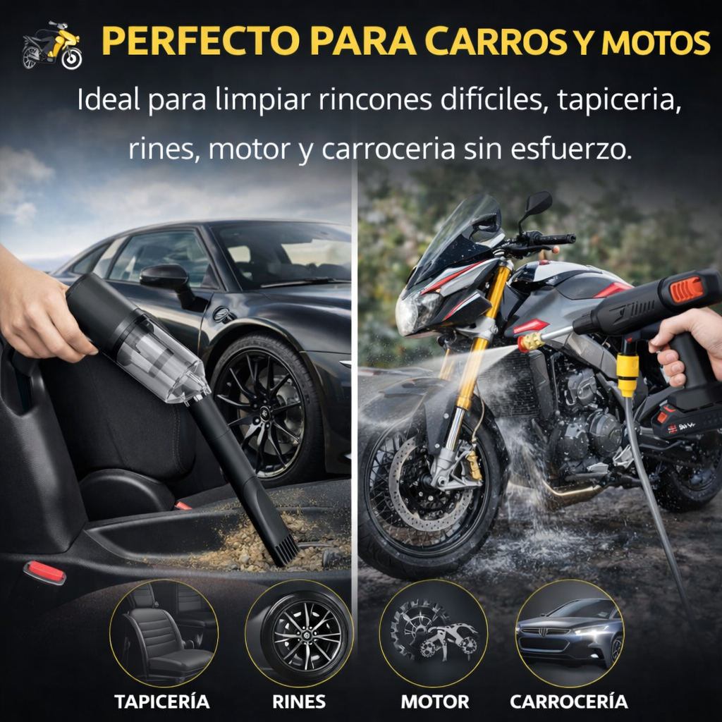 💨 LIMPIEZA POTENTE EN SEGUNDOSElimina polvo, barro y suciedad de tu carro o moto de forma rápida y sin esfuerzo.